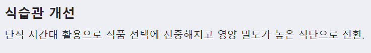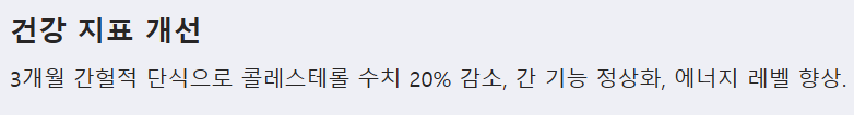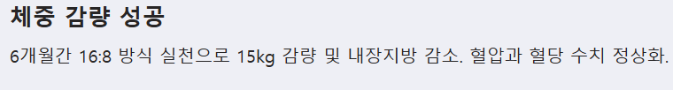 - 근력운동 병행 → 체중 감량 + 근육 유지